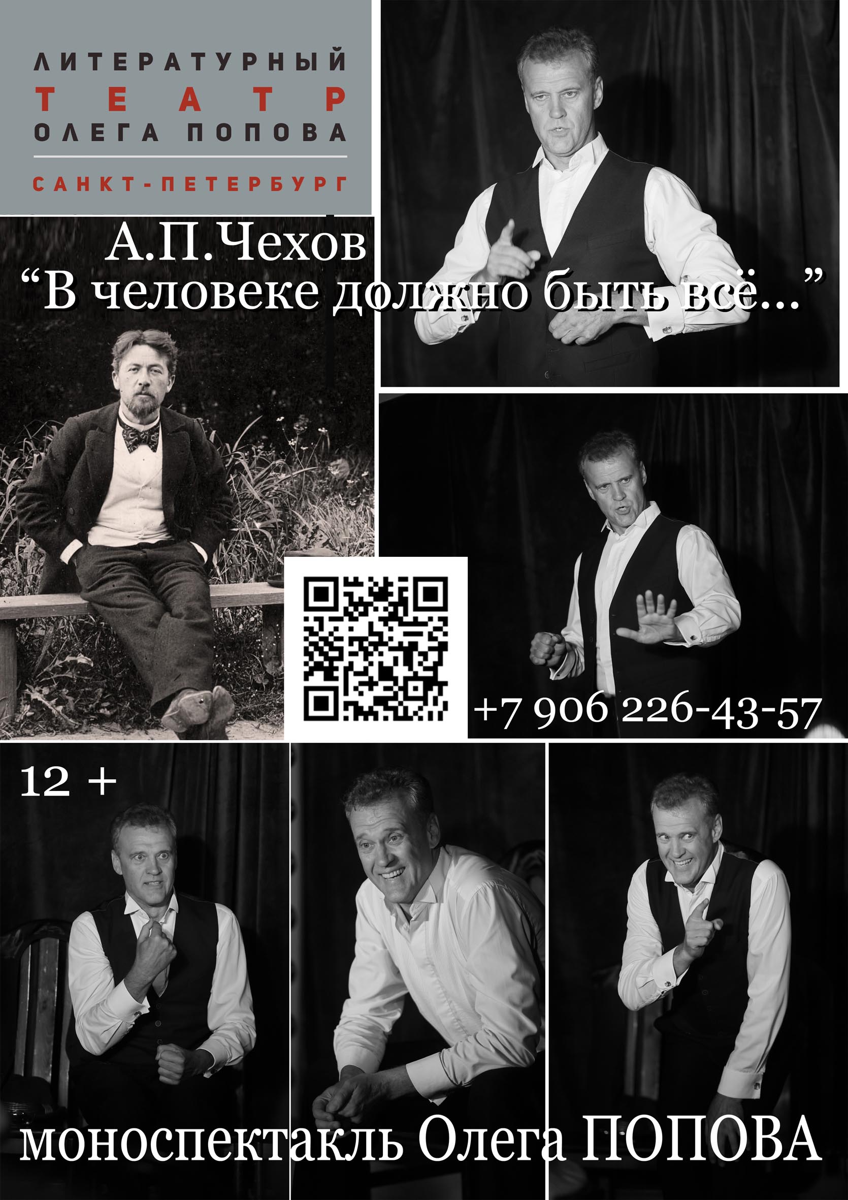 Один из интереснейших российских актёров, работающих в сложном жанре моноспектакля, Олег Попов обращается к творчеству Антона Павловича Чехова.